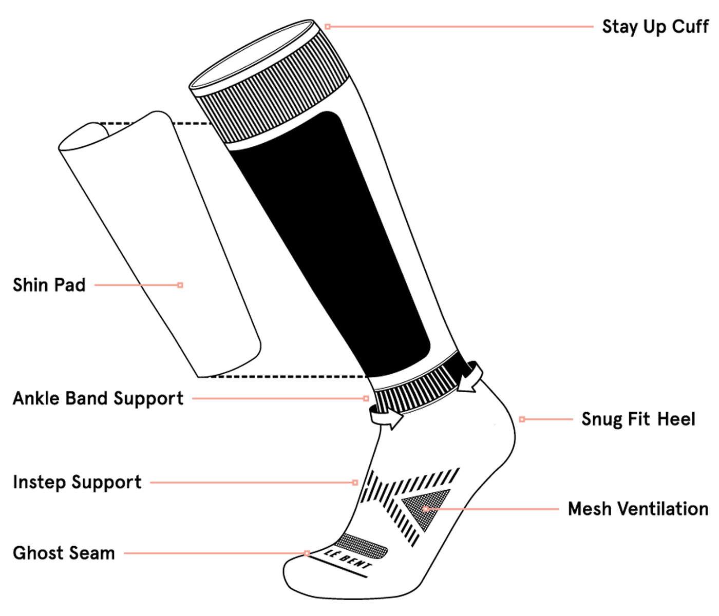 - Snug Y-fit heel & ghost seam construction for precision, no rubbing, and comfort